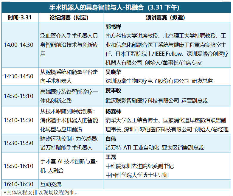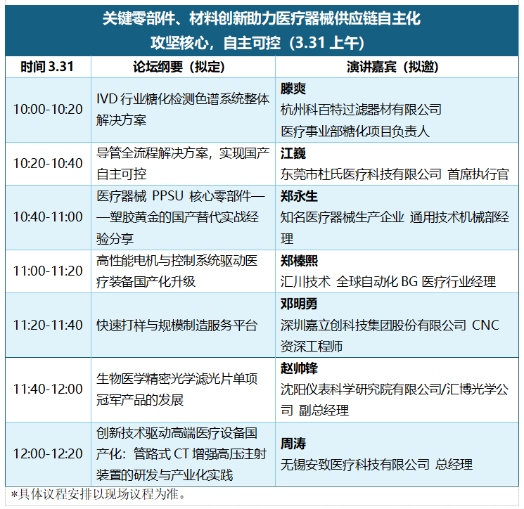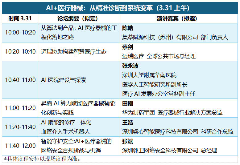 2026年3月31日-4月2日 我们将在深圳国际会展中心(宝安)2号馆重磅打造 28 场专业论坛,覆盖前沿技术、创新应用、产业专题、生态对接四大维度,120 + 位行业大咖亲临现场,分享核心技术、实战经验与趋势洞察,为医械企业创新升级、合规发展、生态共建提供精准方向与实操方案。